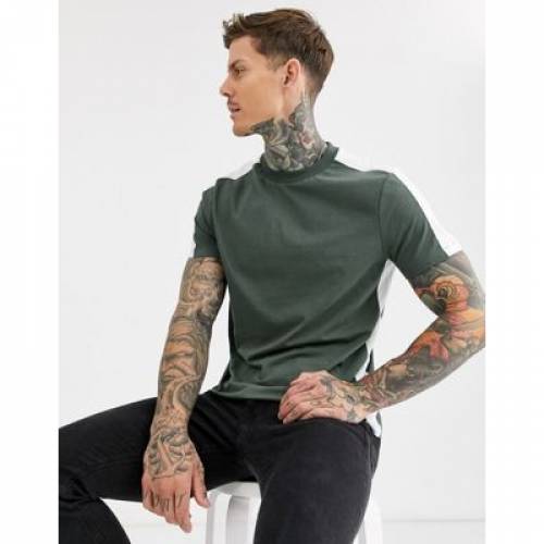 新品同様 Tシャツ カットソー Asos Stripe カットソー トップス メンズファッション カーキ ストライプ Tシャツ Design Khaki In Panel Side With Tshirt Www Alidineinn Com Au